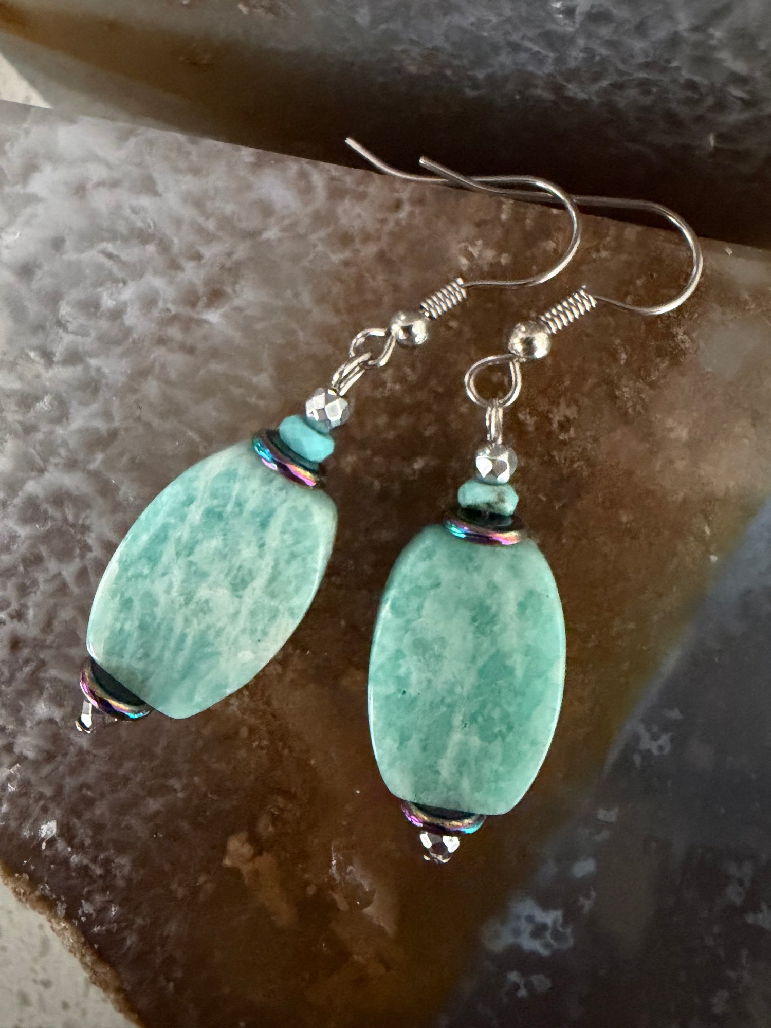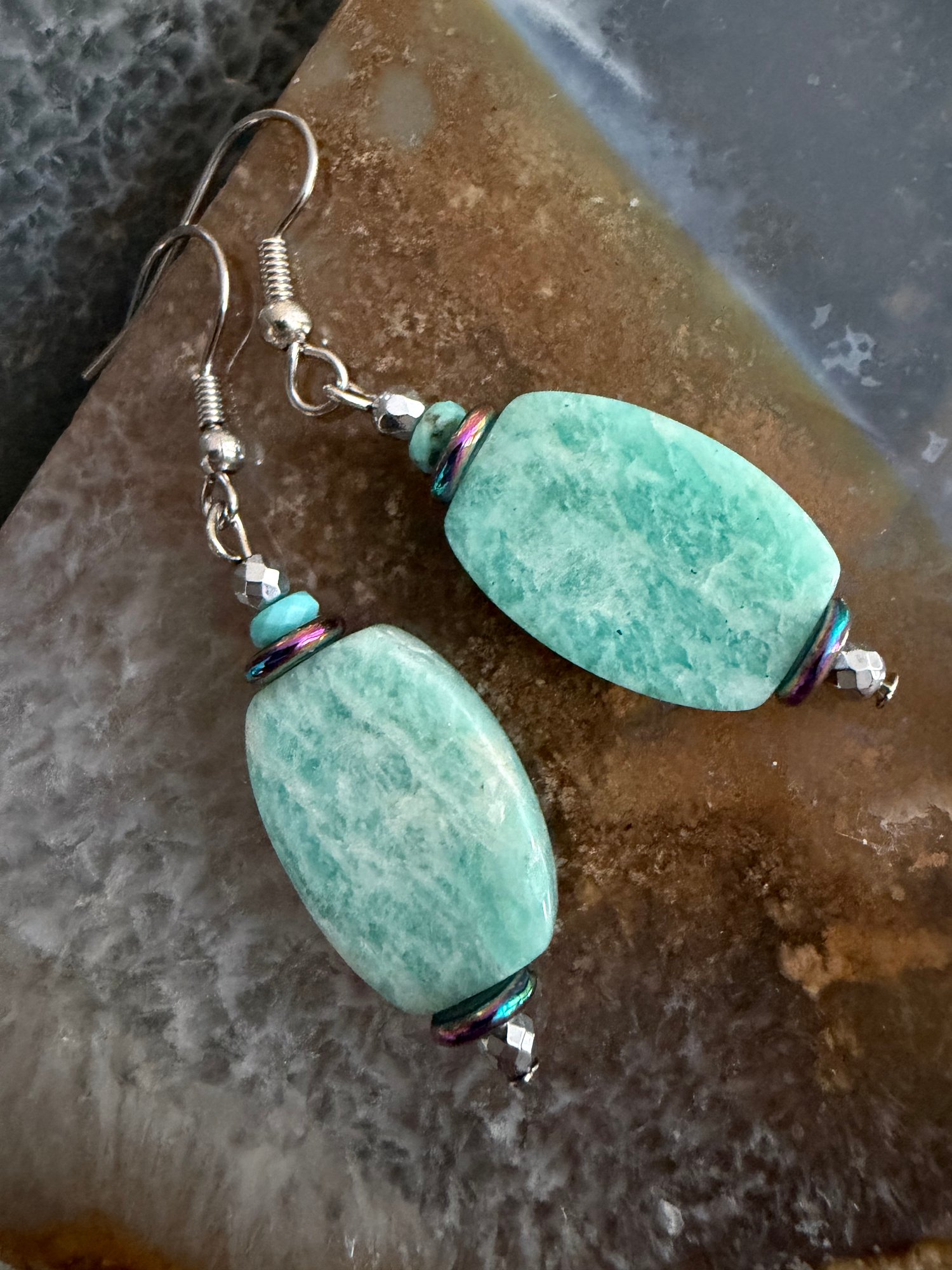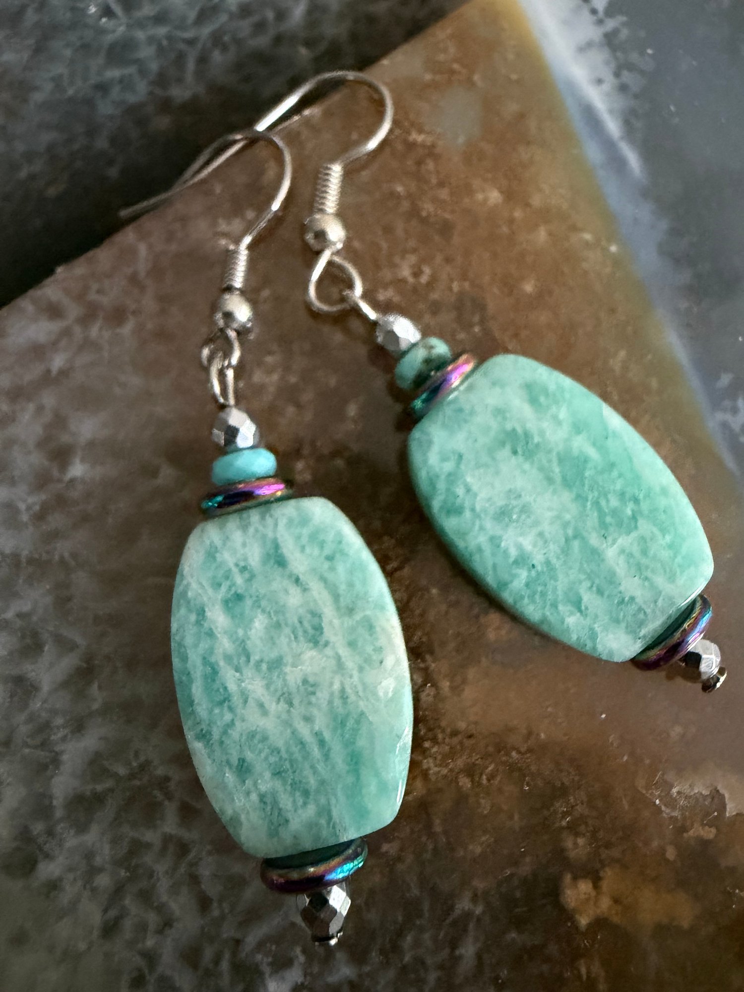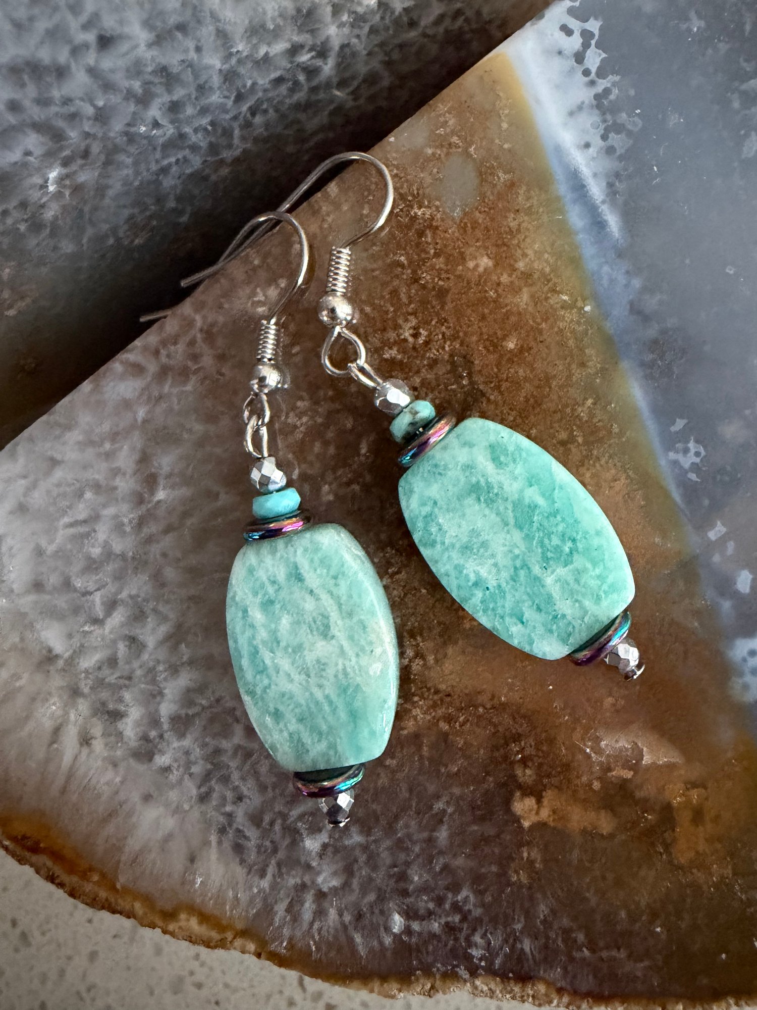 These light weight Amazonite drop earrings are 1.2cm in length. Beautiful polish and perfect for any occasion.