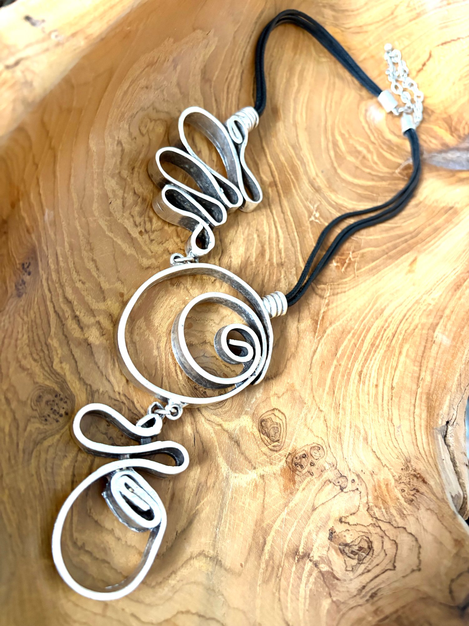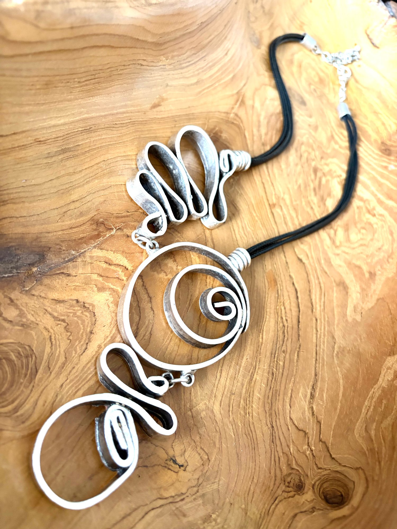 Striking Oxidised swirl oval necklace . Handmade in Turkey inspired by the Grand Ottoman Empire. Great length down to bust line fits all.