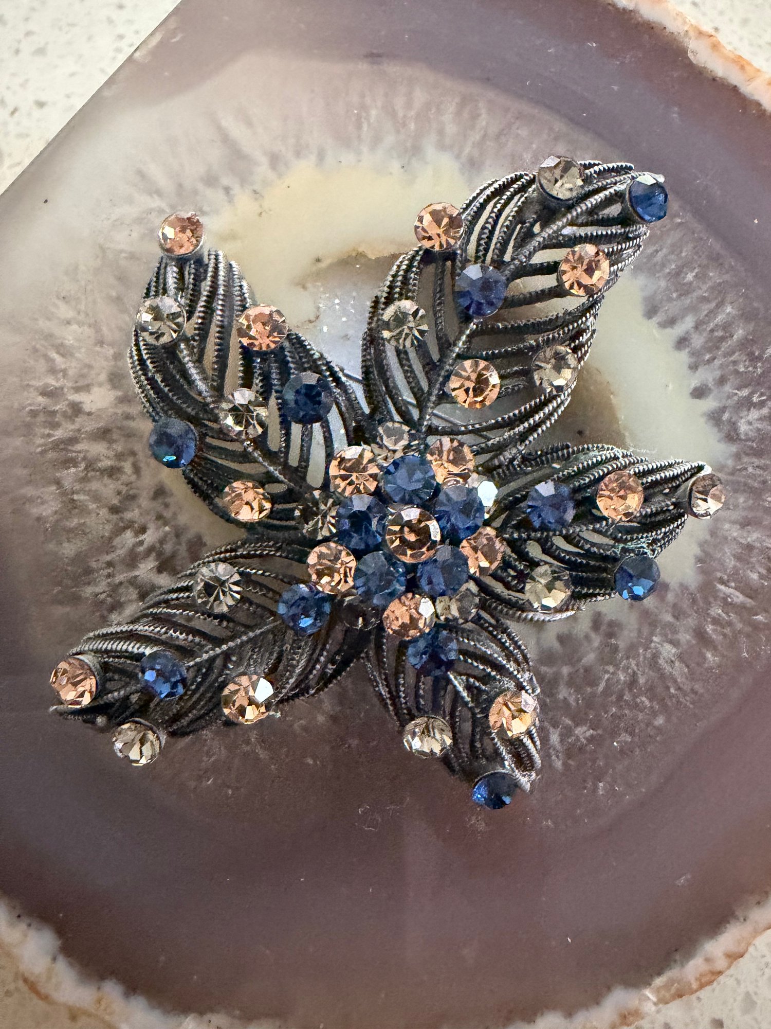 Lightweight Autumn leaf brooch with Czech crystals , can also be worn as a pendant. 4x4cm