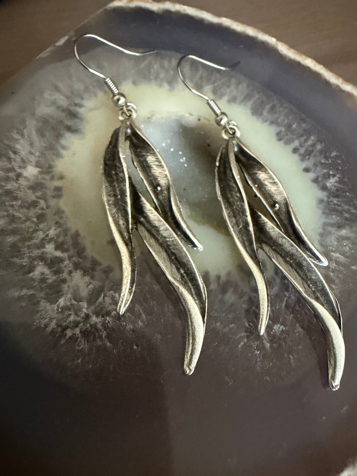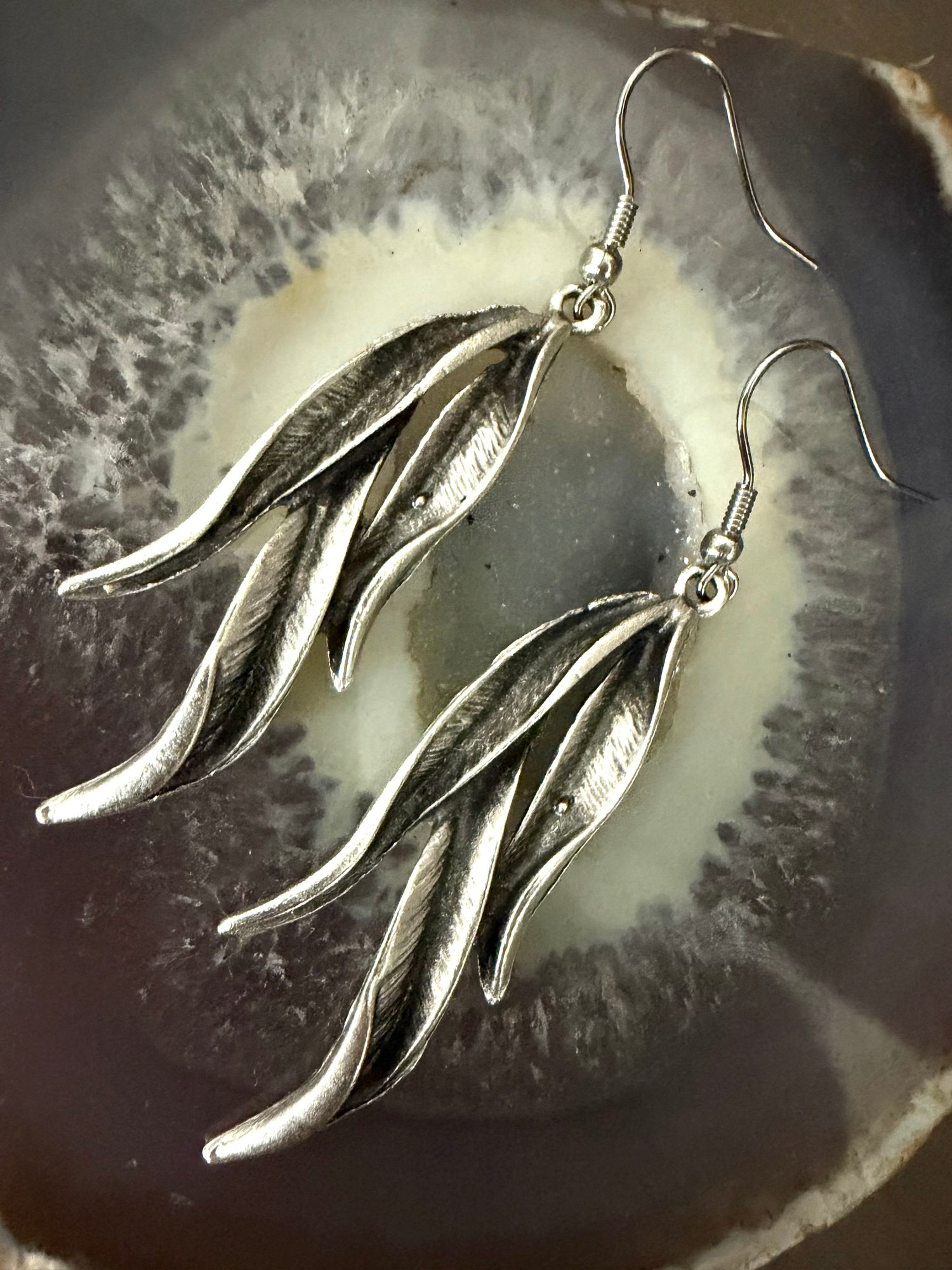 Oxidised Silver earring’s . Intricate lead designs. Surgical steel hooks , 3cm