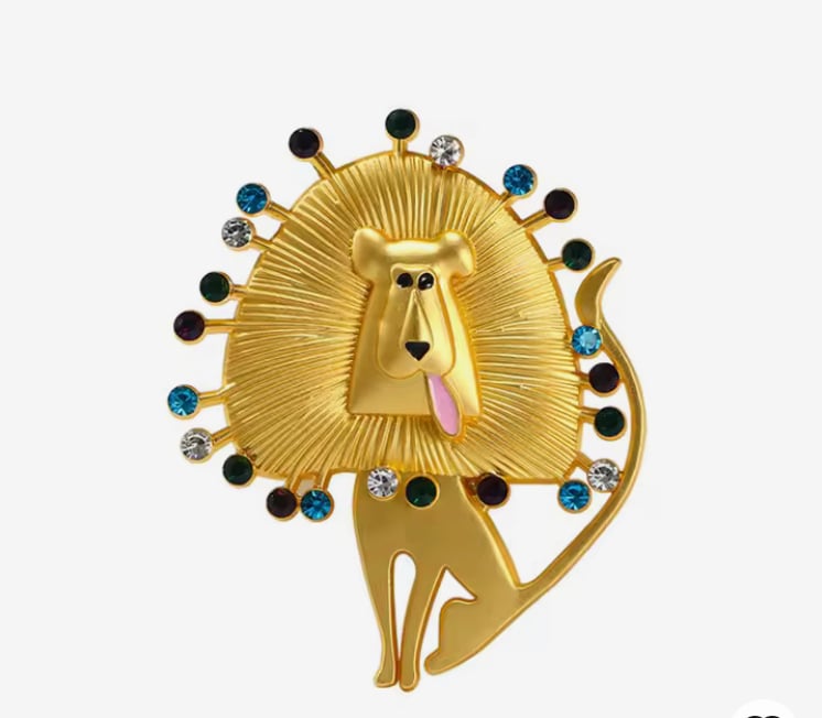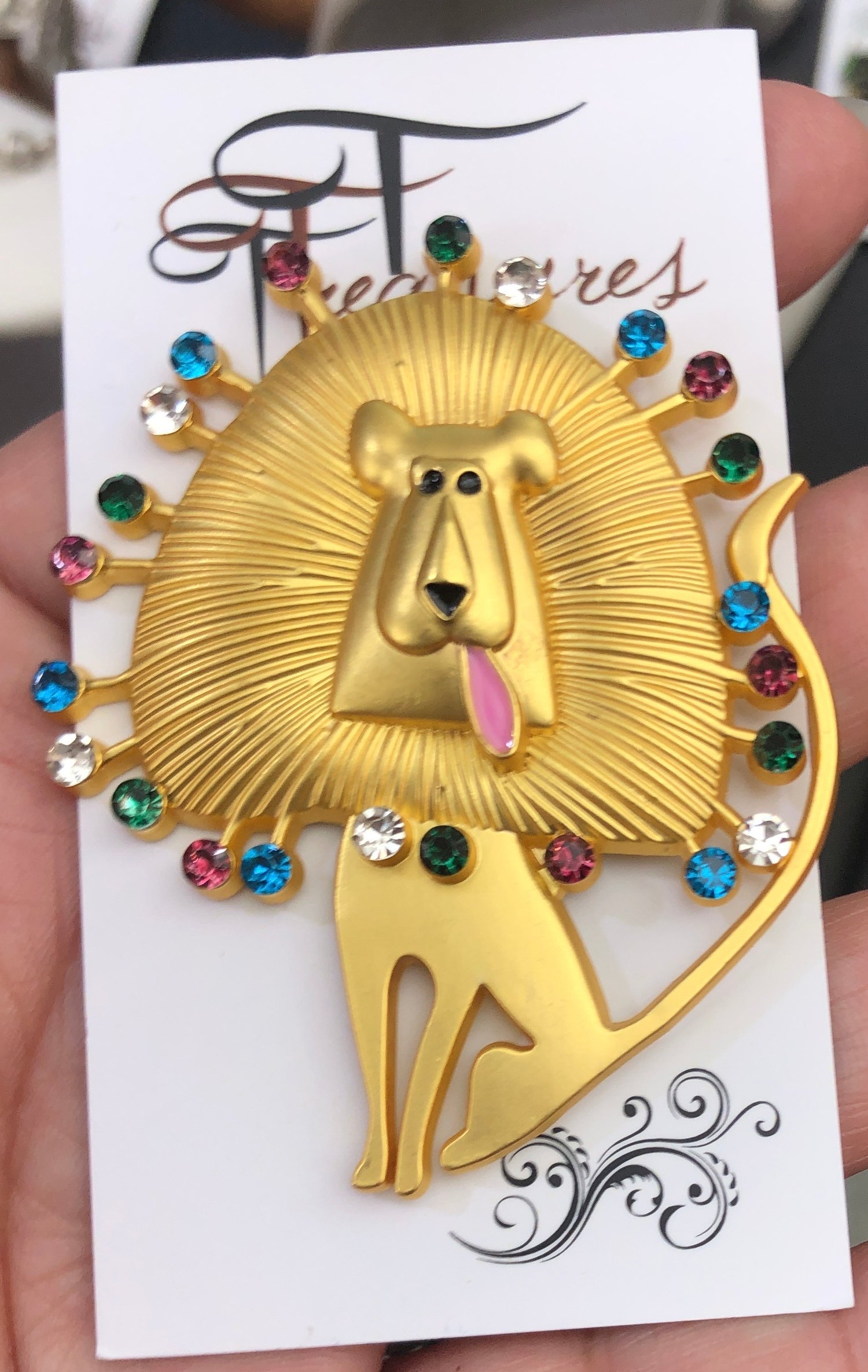 Unique lion Brooch , vibrant coloured crystals 5x6cm