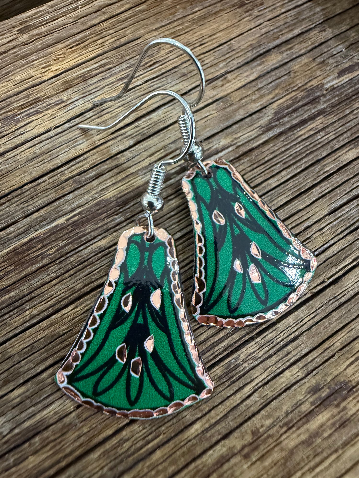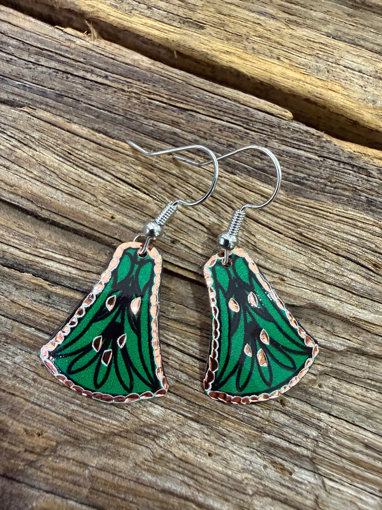 Lightweight Turkish copper earrings , hand painted , Lazer engraved and enameled to seal the gorgeous artwork. 2cm drop