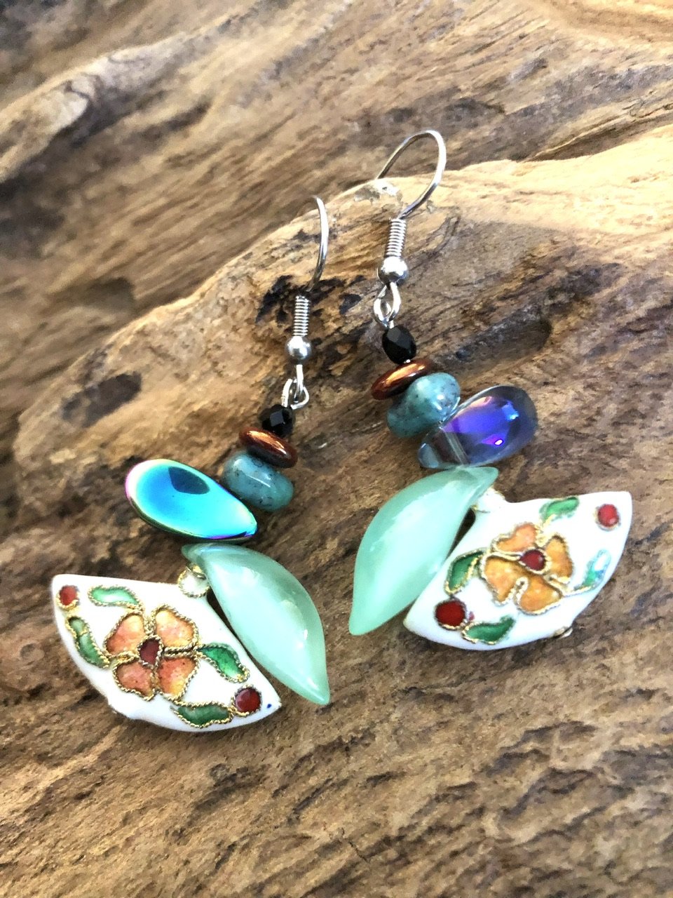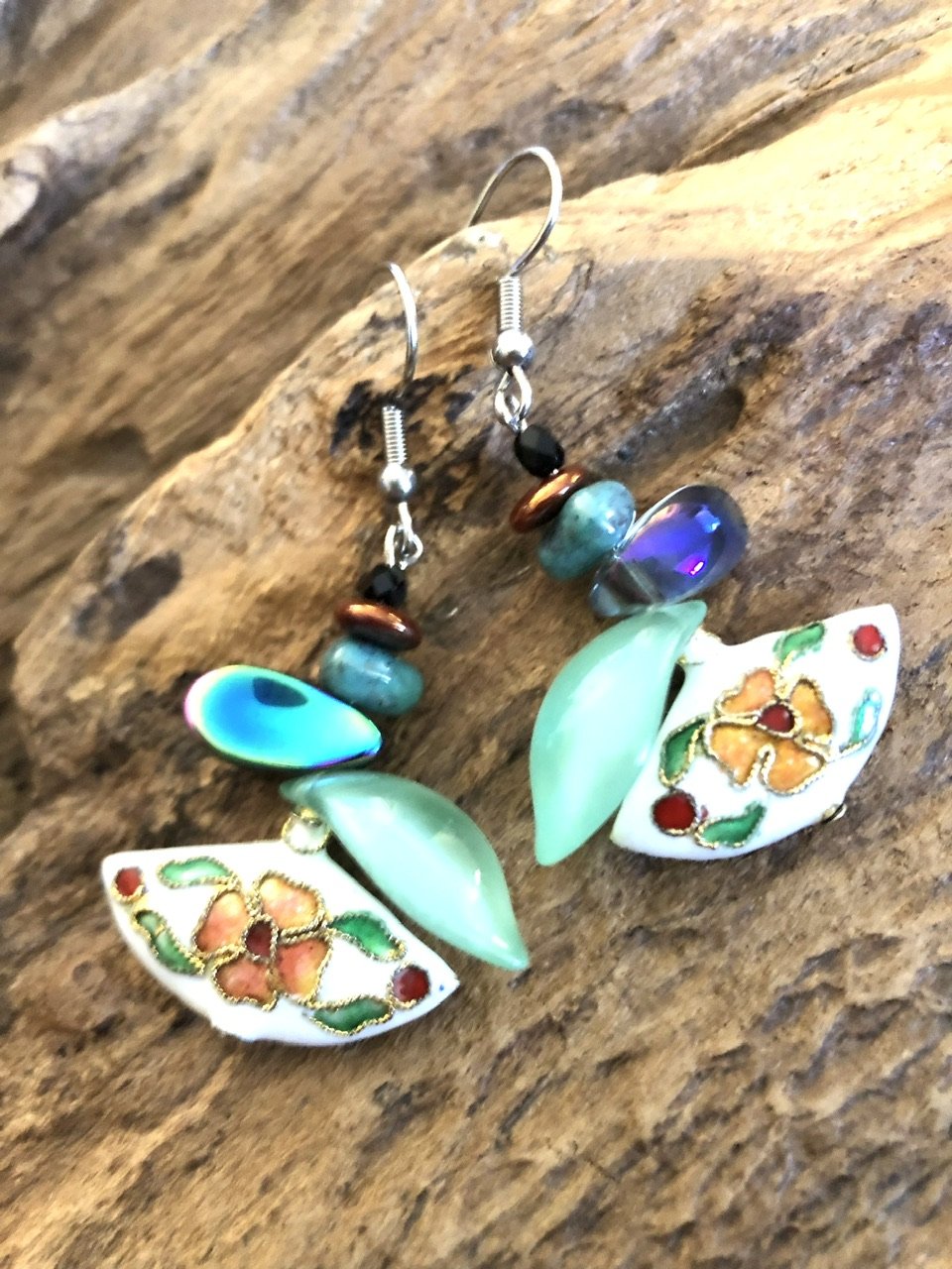 Handmade elegant earrings inspired by natures orchids. These earrings consist of crystals, gems and closoine beads . Surgical steel hooks.