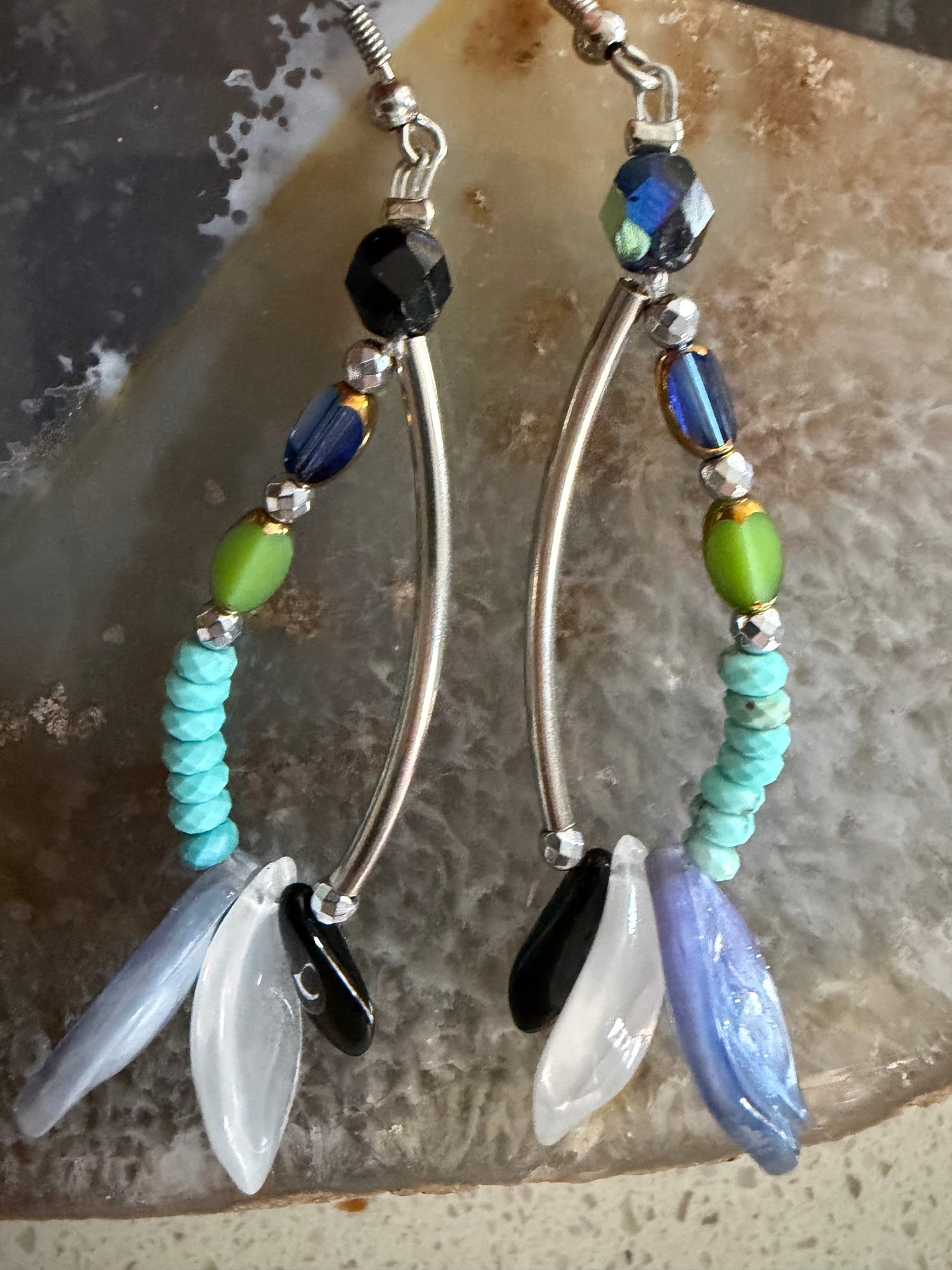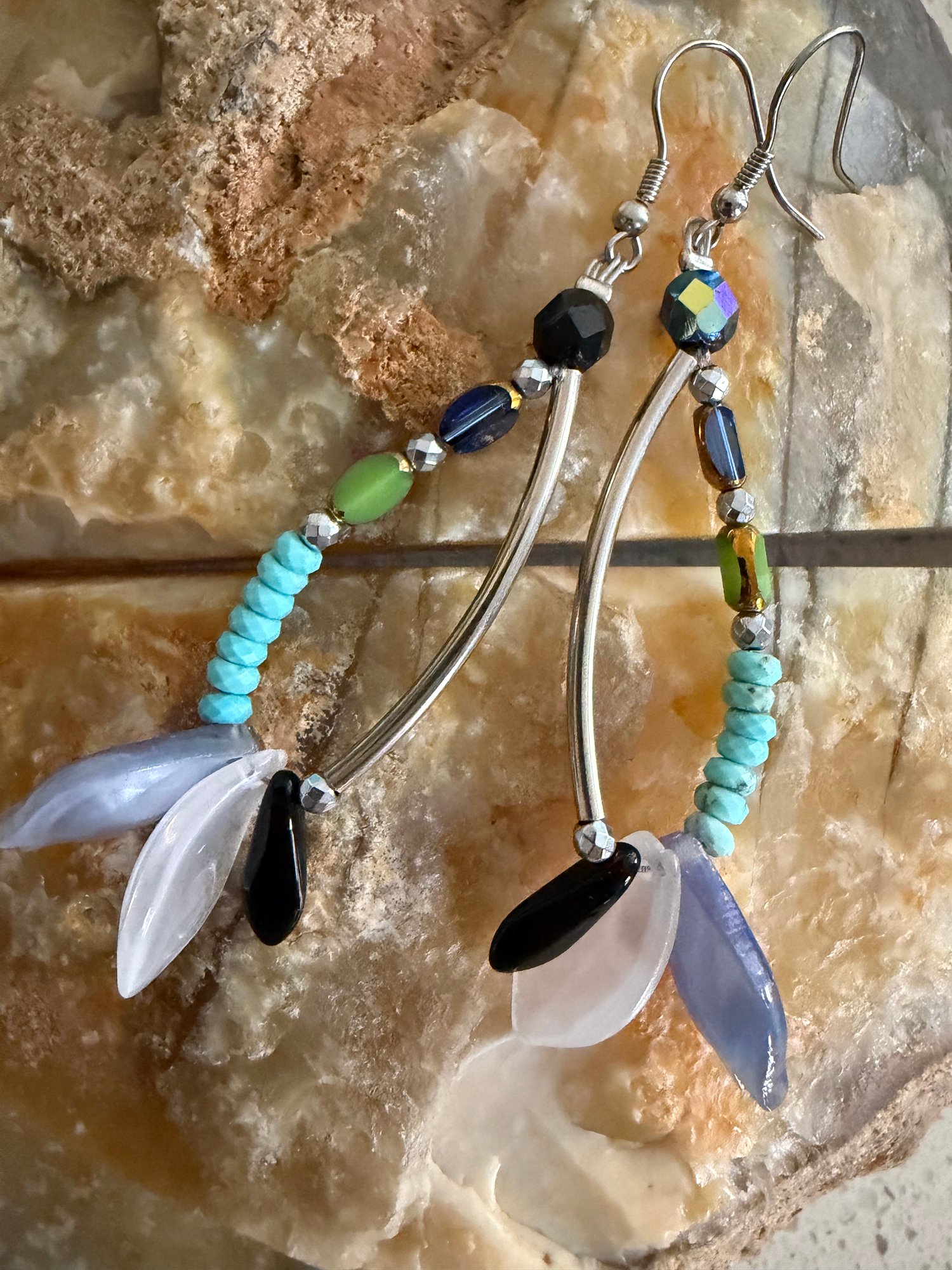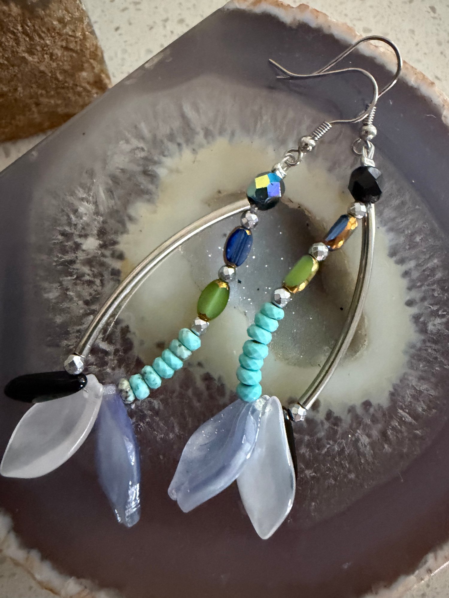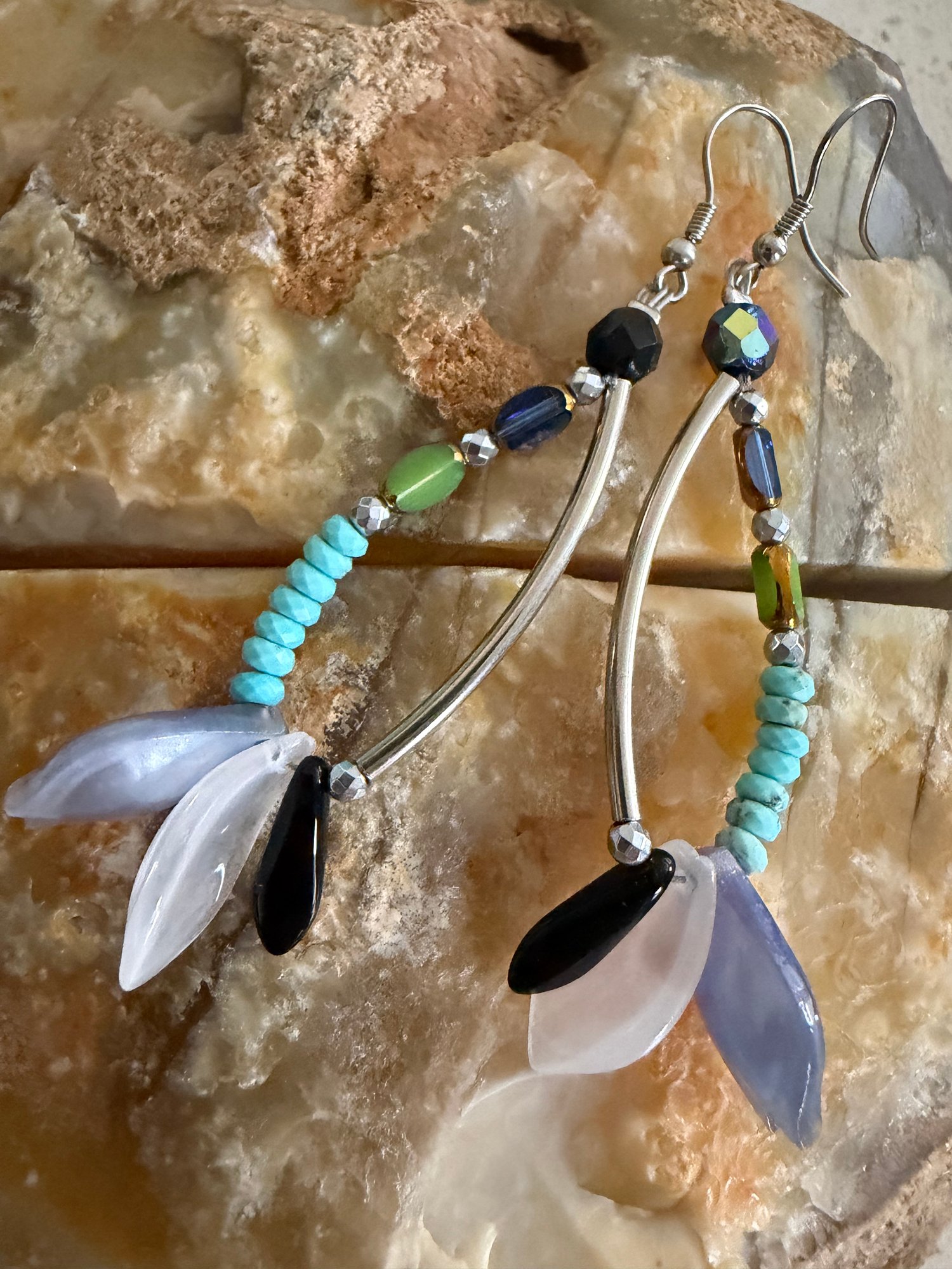 Handmade Czech, resin and bohemian glass crystal earrings, extremely lightweight. 4cm length