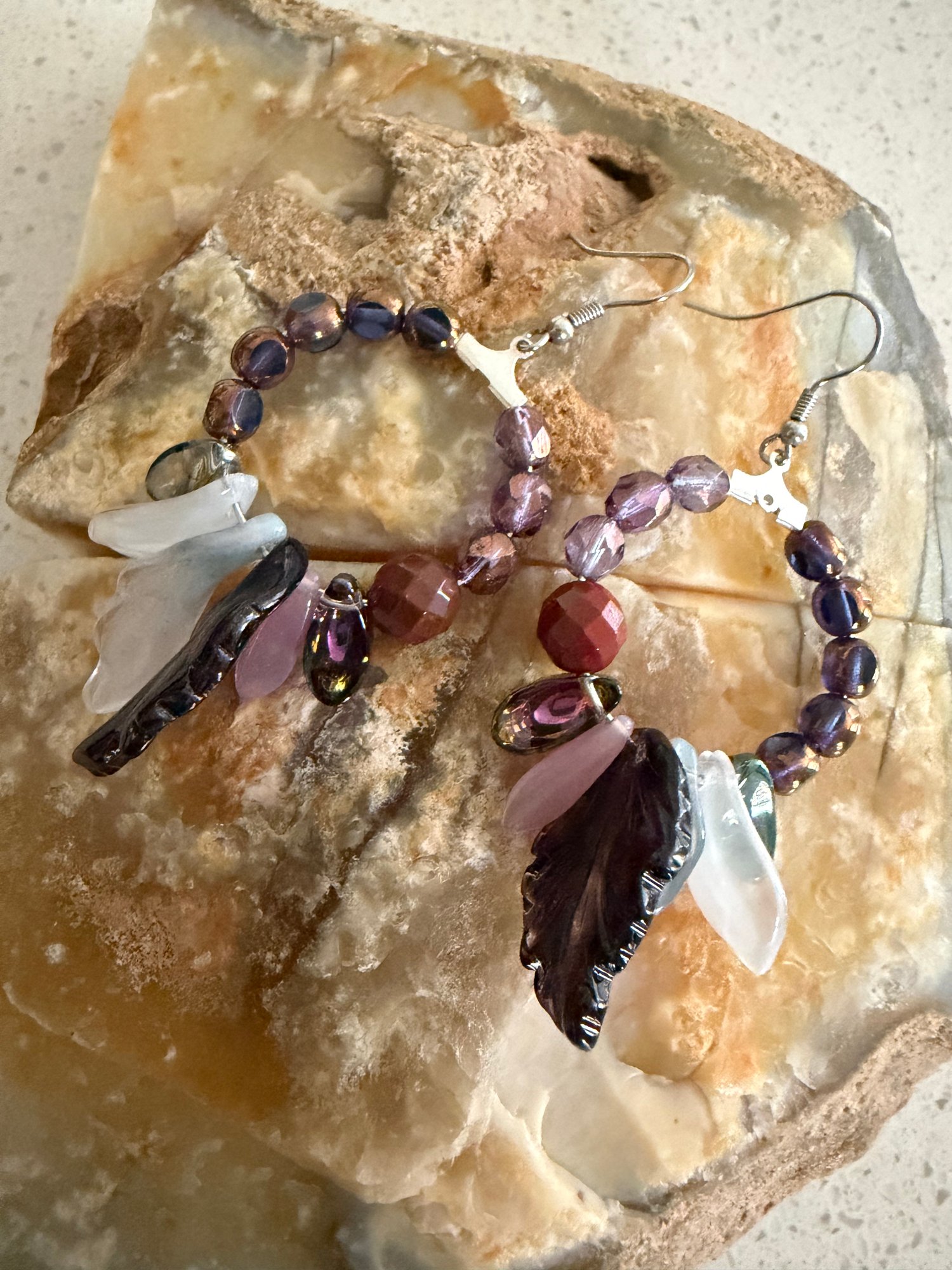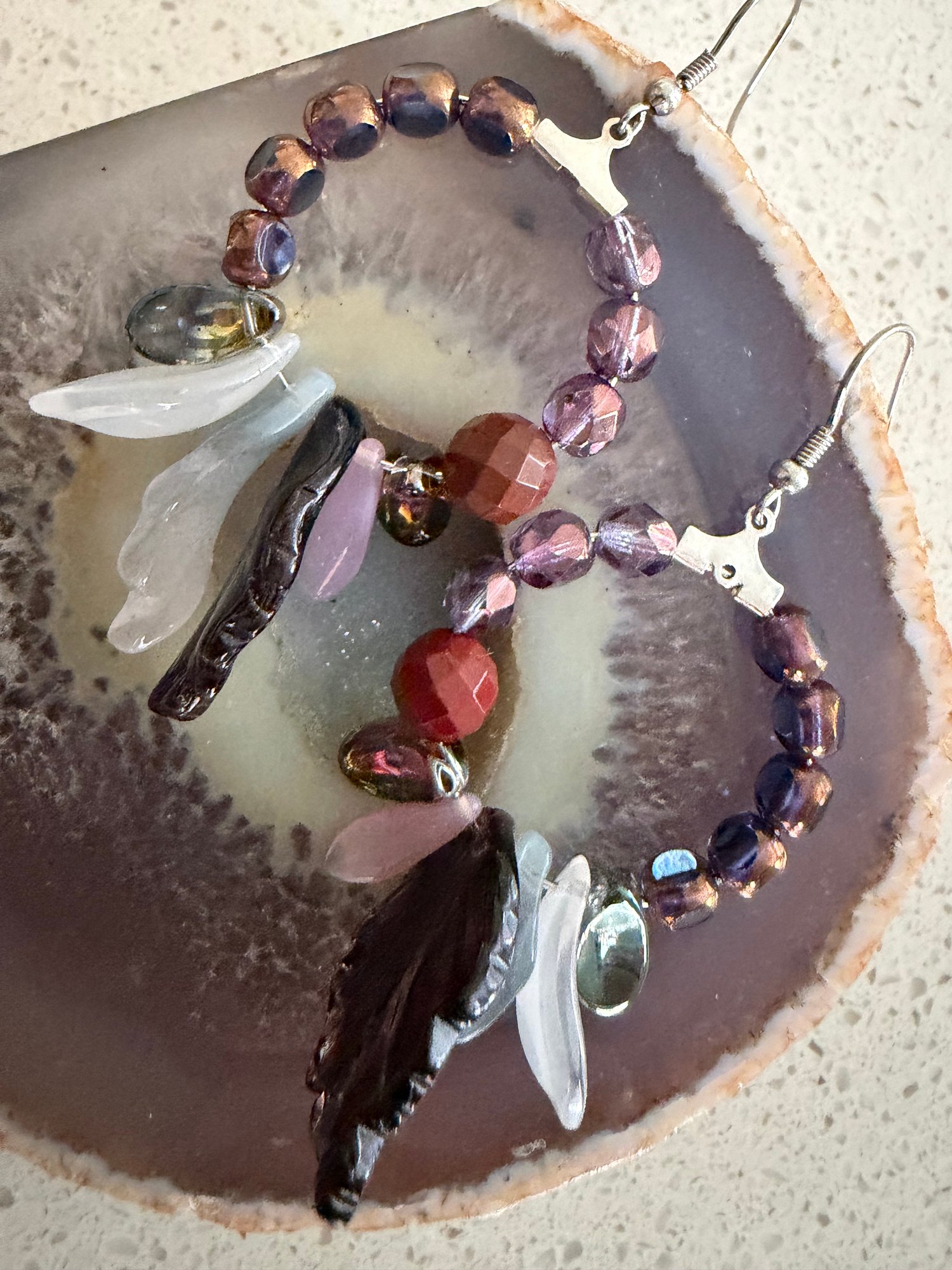 Handmade oval earrings, lightweight Czech crystals and resin beads . 3x4cm