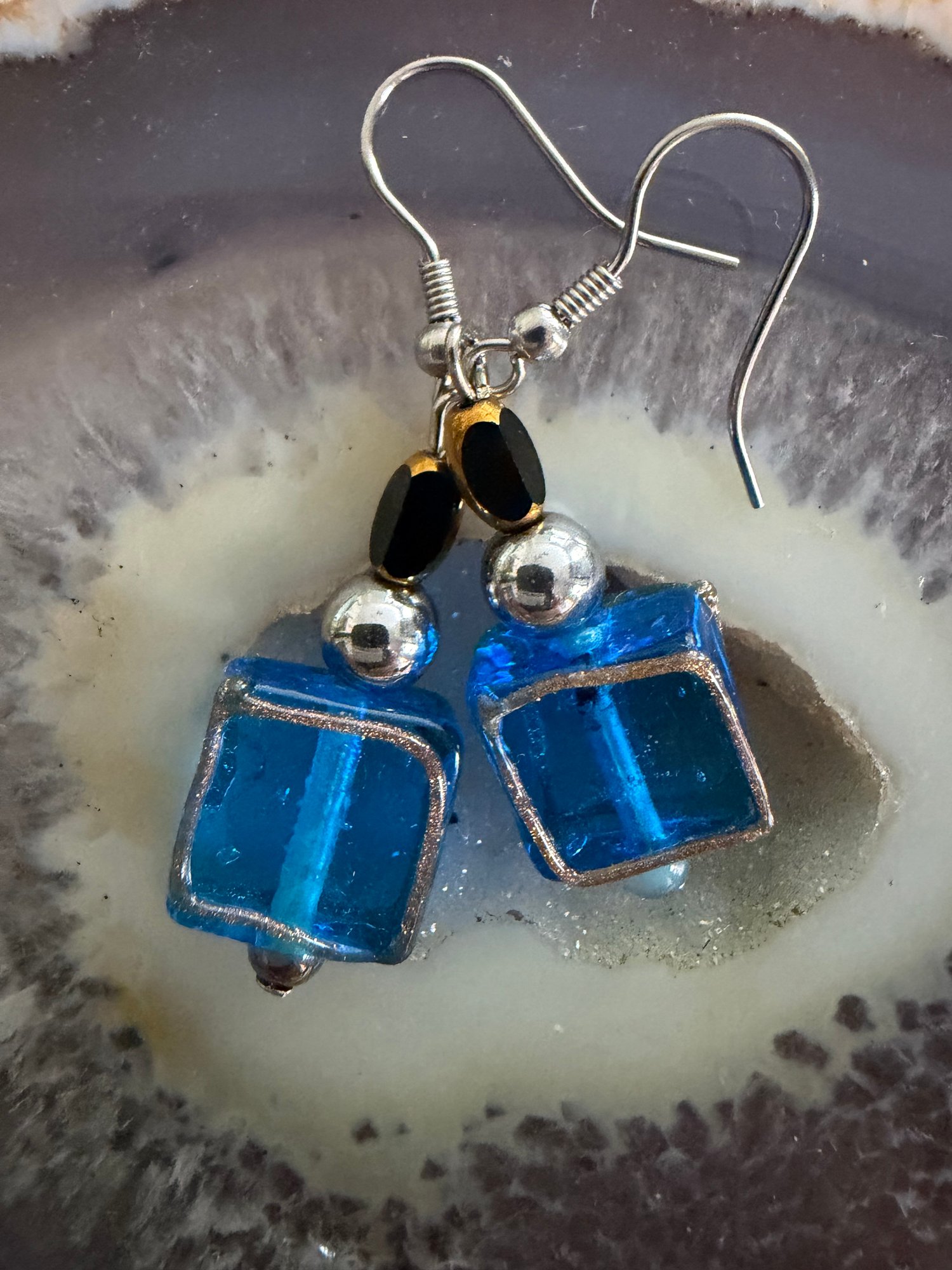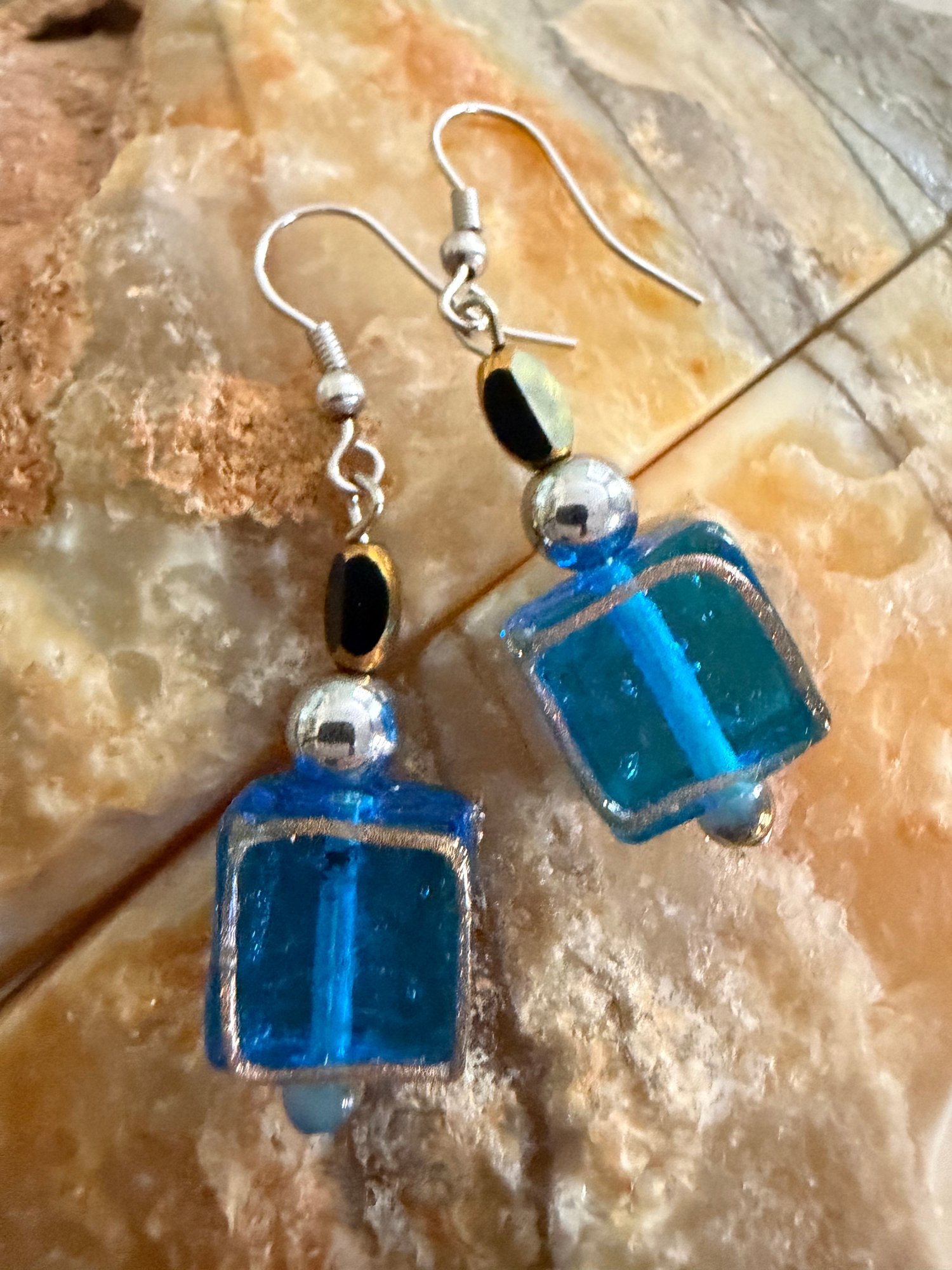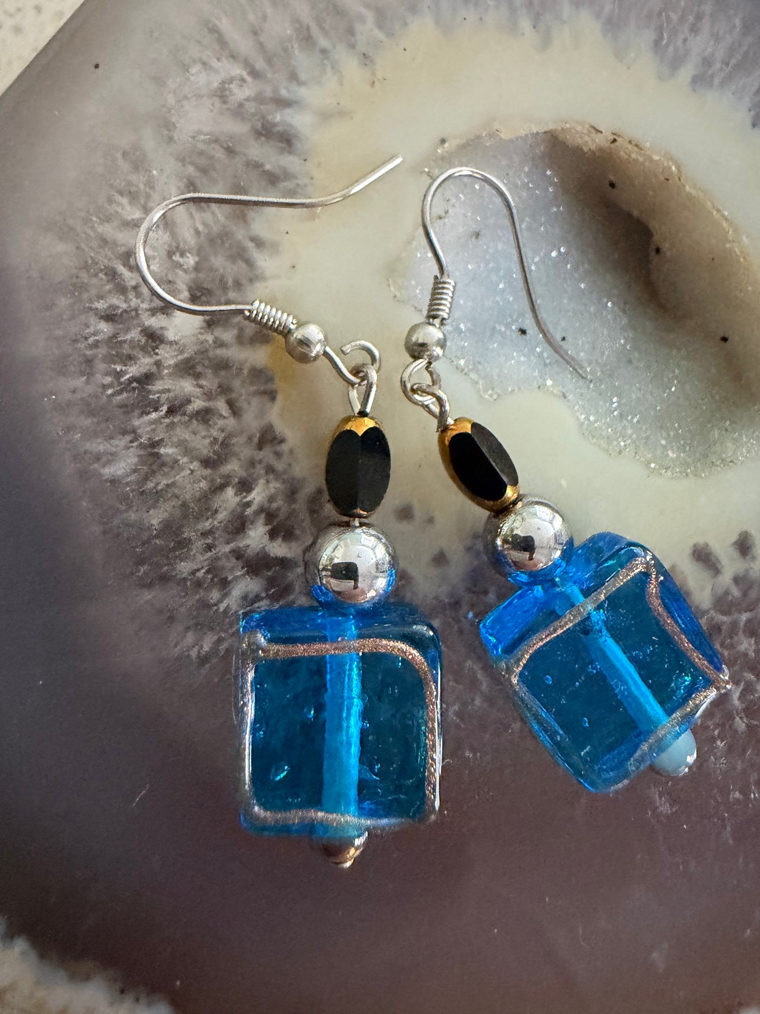 Marano glass drop earrings with Italian glass crystals and hemantite gemstones